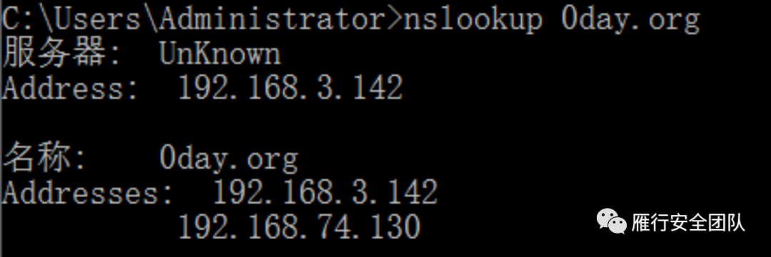 nslookup 域名可以查看到本域DNS服务器的信息,一些比较小的域都是用DC当dns服务器的。