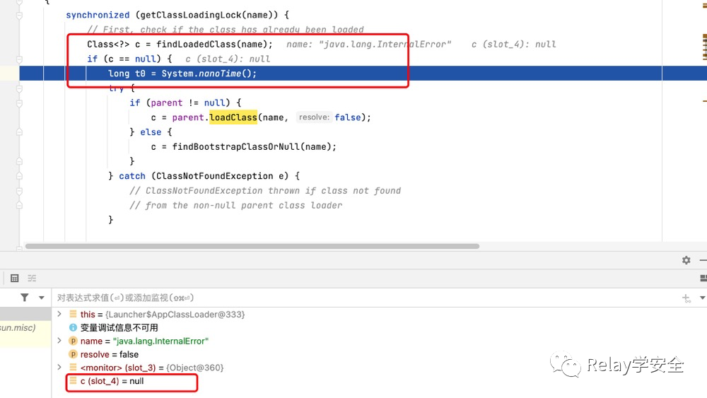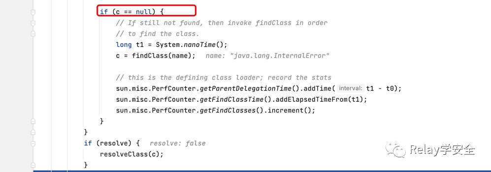 3.如果当前加载器的父类加载器为空,则调用findBootStrapClassOrNull方法 让引导类加载器进行加载。