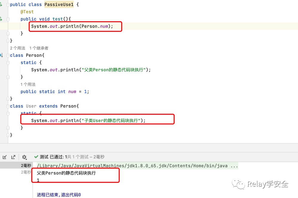 除了以上的情况,其他情况都属于被动使用。被动使用不会引起类的初始化也就是不会调用<clinit>()方法。