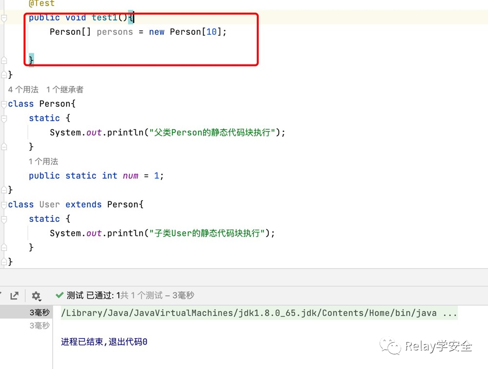 2.通过数组定义类引用,不会触发类的初始化。但是给数组索引赋值对象引用的时候会进行触发。