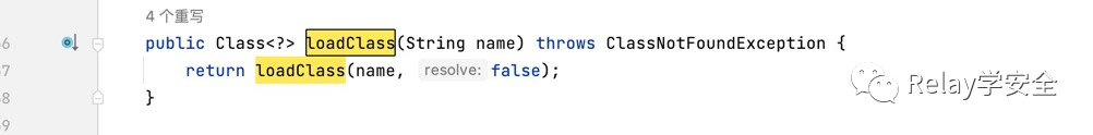 跟进loadClass重载的方法。这里resolve表示不需要解析。