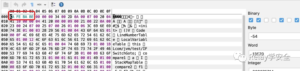 魔数检查的话就是看这个字节码是否有CA FE BA BE这个标识。