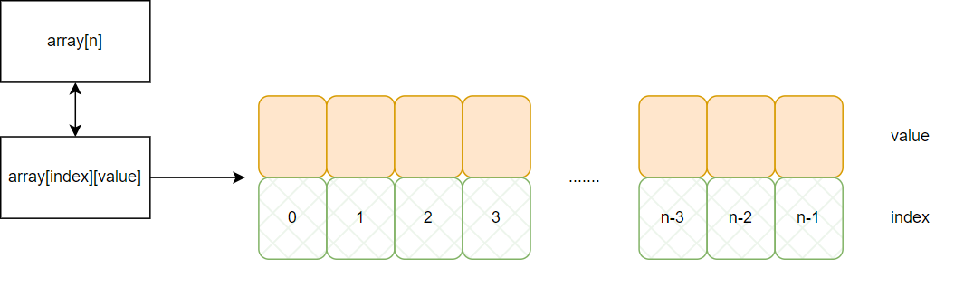 在使用到 hash 的场景,除了 map,我们还可以基于 slice 或者数组索引的方式实现另外一种 map,即把 index 当做 key、value 当做 hash 的值,如下。
