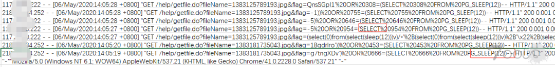使用这些敏感的关键字也能迅速定位攻击请求,上图就是使用sqlmap跑注入所产生的日志。