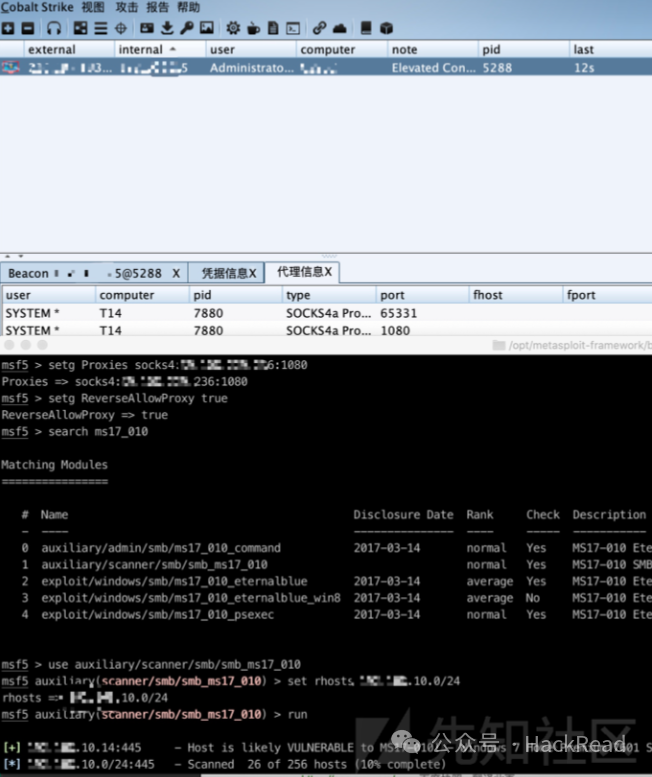 ms17010因为AV的原因大部分打不成功。(03的可以)整个过程一个人花了将近三天,扫外网的7个IP几乎就花了一早上,开放的端口太少且打开都是404或403直接怀疑狗生,换着姿势扫了好几遍,解决APP数据包签名到拿到shell后已经是凌晨了,(其实可以直接Hook那个发包函数的,当时没安卓机也不熟悉,放弃了,孤军战斗的悲哀。),内网渗透主要担心有态势感知之类的被抓到权限容易掉。通过代理访问网速慢, 这方面TV优化得是真香。其他都可以基本都是在收集信息,同类扩散。文章来源:https://xz.aliyun.com/t/6979文章作者:TheKingOfDuck