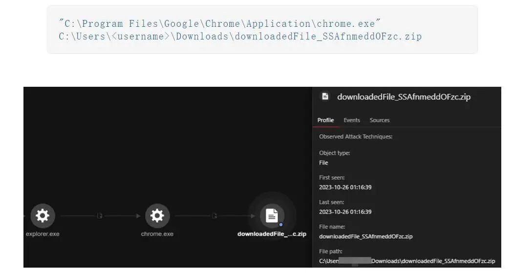 我们发现,攻击的触发因素是一个最初通过谷歌Chrome下载的名为downloadd_file_ssafnmeddofzc .zip的文件。
