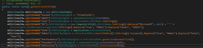 AsyncRAT有效负载在连接到服务器时收集客户端信息。其中包括用户名、计算机信息、安装的防病毒软件和安装的加密货币钱包。