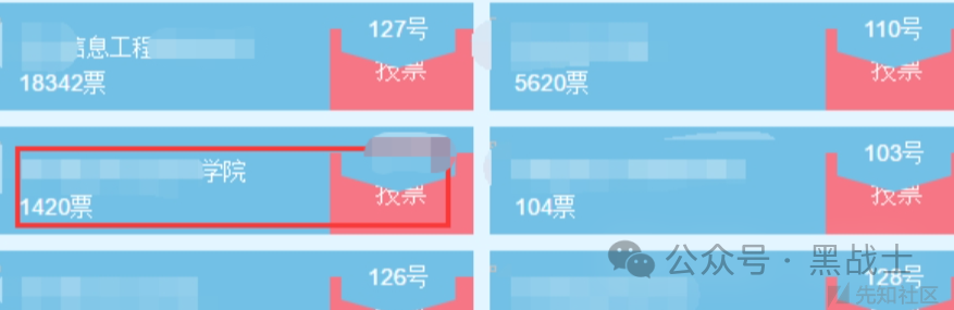 打开看了下,我们学校才第三,1000+票,第一名 2W+(xxx信息工程xx)