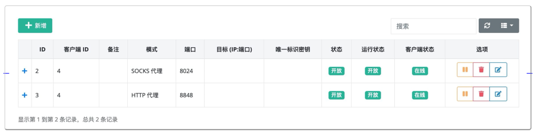 在客户端界面可以通过新增的方式添加客户端连接,每一个连接的vkey都是唯一区分的。