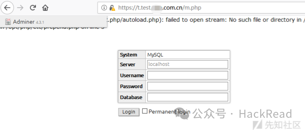 https://t.test.xxx.com.cn/abc/index.php发现m.php是一个adminer如下