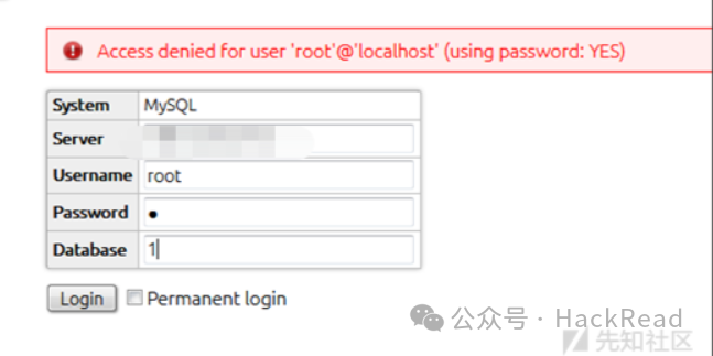 看到这个页面尝试弱口令登陆无果,想起了前段时间做的MySQL服务端读取客户端的漏洞