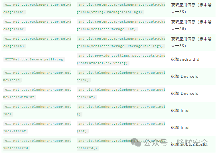 检查MIITRuleChecker内置的不合规的方法
