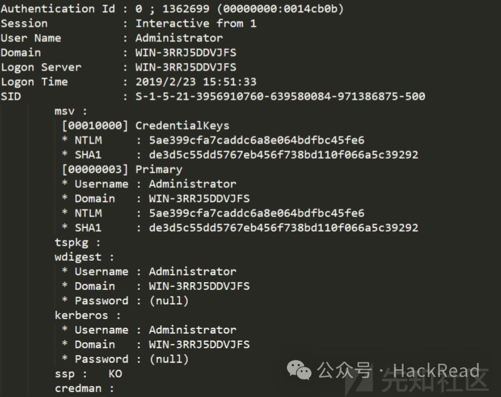 sekurlsa::logonPasswords fullemmm,不知道为什么抓不到密码,也尝试了传 mimikatz.exe 直接读,同样失败