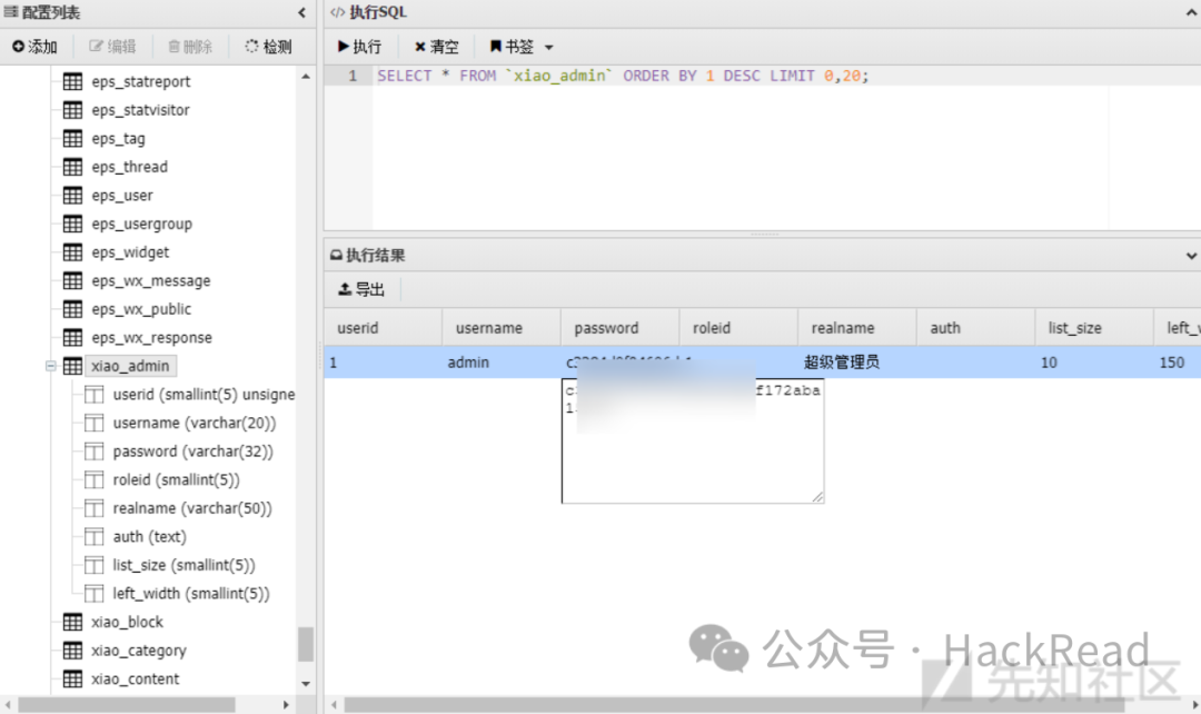使用蚁剑连接,在数据库中发现网站后台的管理员密码