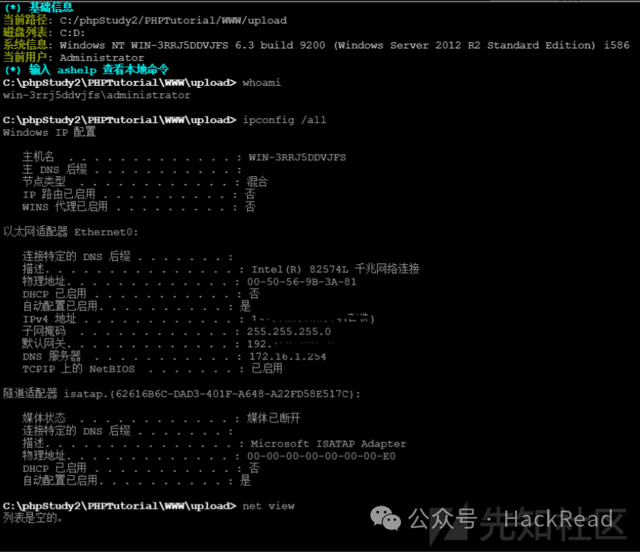既然已经拿到了 administrator 权限,直接添加一个后门用户吧