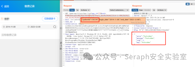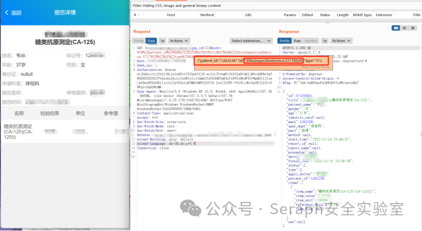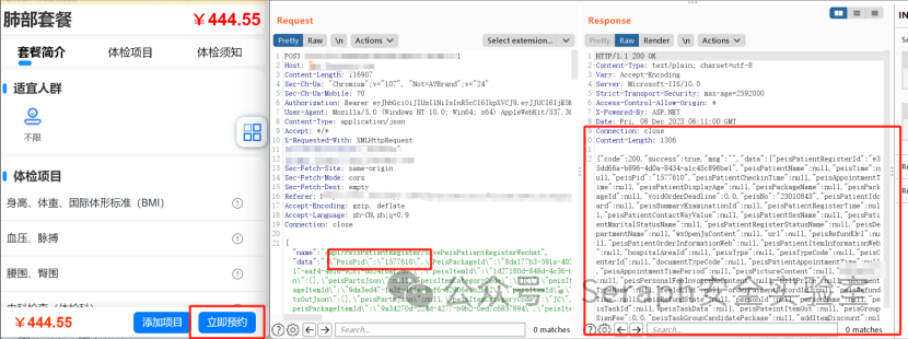 到这里我突然想起前面还有一个报告查询的模块,但是我自己的账号没有体检报告记录没法测,那如果我们用有报告的账号去测试是不是还能再挖点呢?