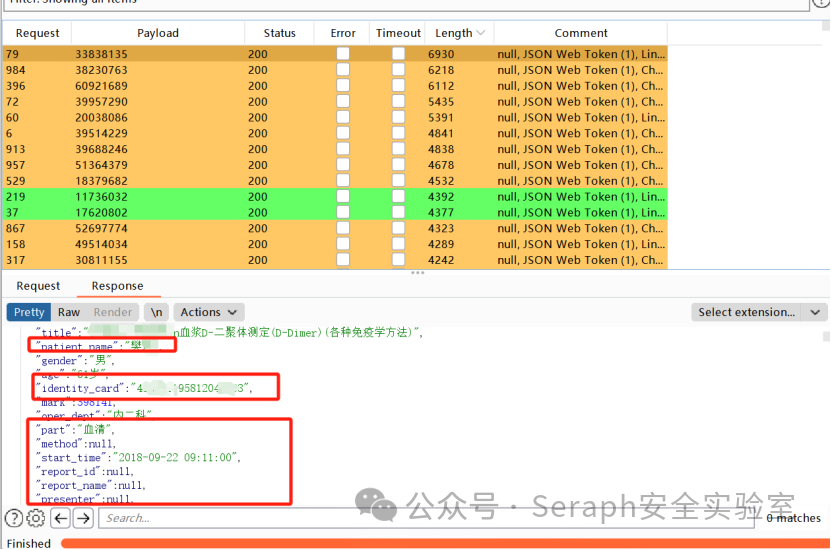 成功遍历出大量的用户体检报告数据,体检报告中又同时携带用户的姓名、身份证号等敏感信息