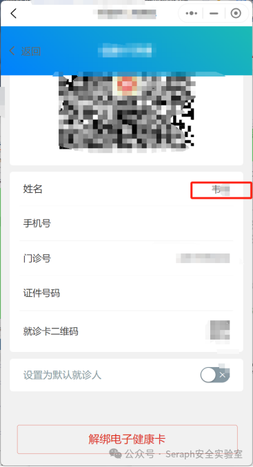 通过漏洞二获取到了目标系统用户的个人信息包含姓名、身份证号、手机号这些的,那么我们直接用户获取到的用户信息去绑定健康卡,嘿,居然没有二次认证可以直接绑,舒服