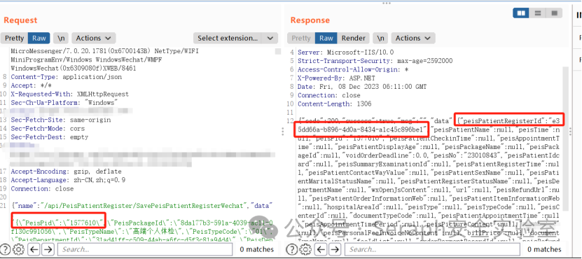 然后我们再看创建订单的数据包,同样是以peispid来判断是那个用户在创建订单的,而订单创建完成之后,返回包中又会携带查询订单详情的密文值(应该是订单号的加密值)