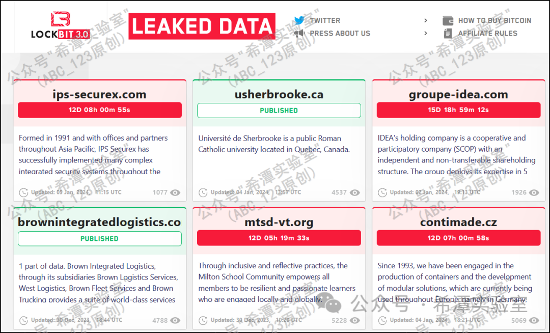如果LockBit加密勒索威胁是私下发出的,则这些受害者的名字不会出现在Lockbit的博客上,所以该博客上列出的受害者并不完整,比如2023年末某大型银行的名字,就没有出现在此博客上。