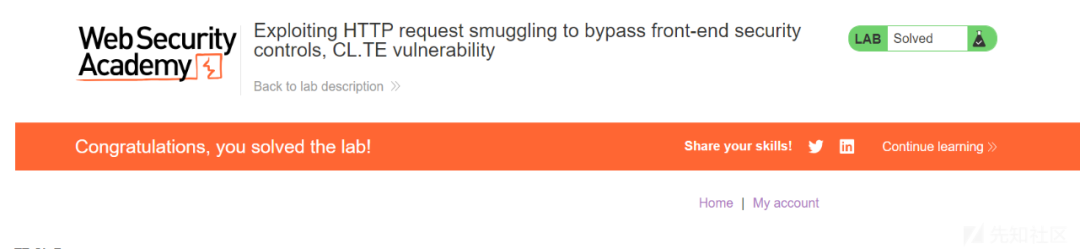 靶场地址:https://portswigger.net/web-security/request-smuggling/lab-basic-cl-te