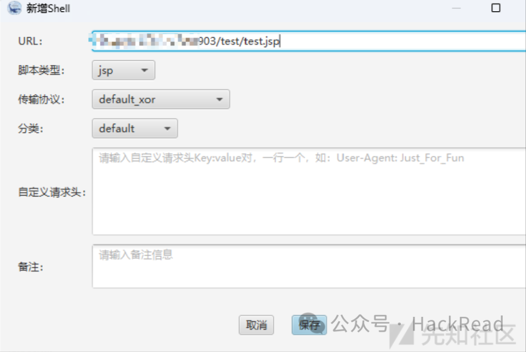 Tomcat的后台管理处是可以上传webshell的在这里,我们需要上传一个war包,war包这样构造,首先选择一个JSP木马,将其命名为test.jsp,然后将该文件添加到压缩文件,注意是zip类型的压缩文件,然后我们把压缩文件重命名为test.war,然后使用冰蝎连接。