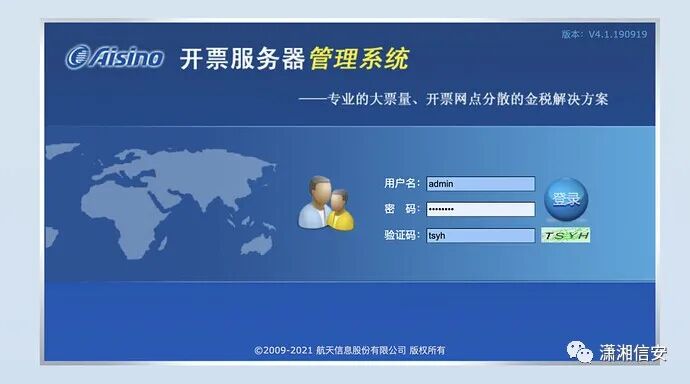 这个时候把目光放在了开票服务器和范围OA,简单看了下发票服务器有个弱口令进到后台: