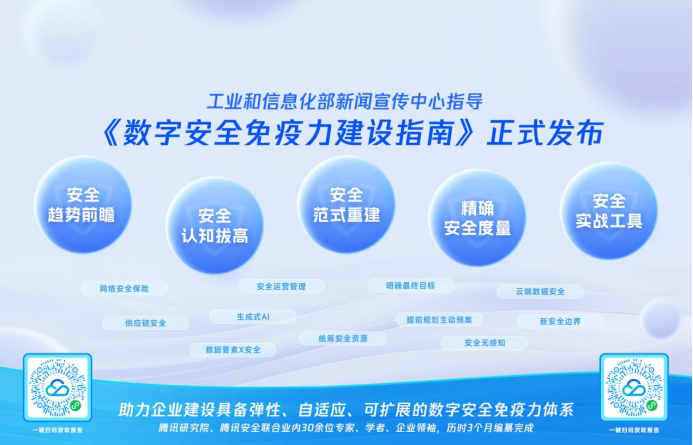 1月17日,《数字安全免疫力建设指南》发布暨行业实践研讨会在海南三亚举行。指南由工业和信息化部新闻宣传中心(人民邮电报社)指导,腾讯安全、腾讯研究院、中国信息安全联合三十余位业内专家、学者、企业领袖共同编制,围绕“发展驱动”的安全范式,从理念认知、范式重建、量化评估、关键模块以及实践案例等方面,为企业构建数字安全免疫力提供指引和参考。