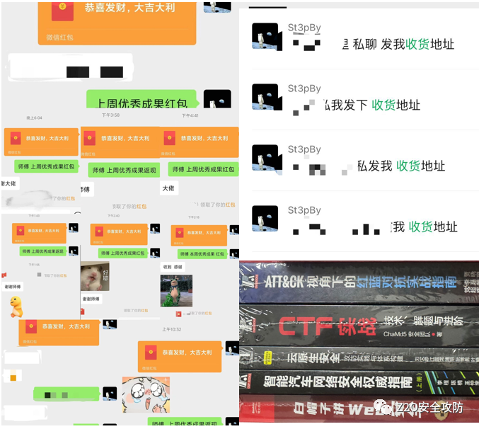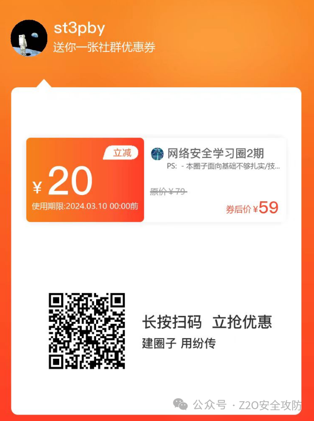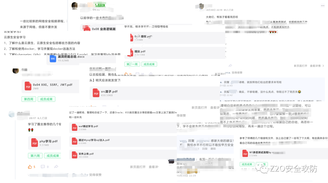1、每周发布学习任务,由浅入深,循序渐进,从常见的Web漏洞原理与利用、业务逻辑漏洞与挖掘,到WAF绕过、代码审计、钓鱼与免杀,再到Linux/Windows内网、提权、权限维持、隧道代理、域渗透、云安全,层层递进。会发布相应的参考资料及建议,成员自行学习实践,并会根据每周任务选取1-3位完成优秀的成员,返还入圈费用。