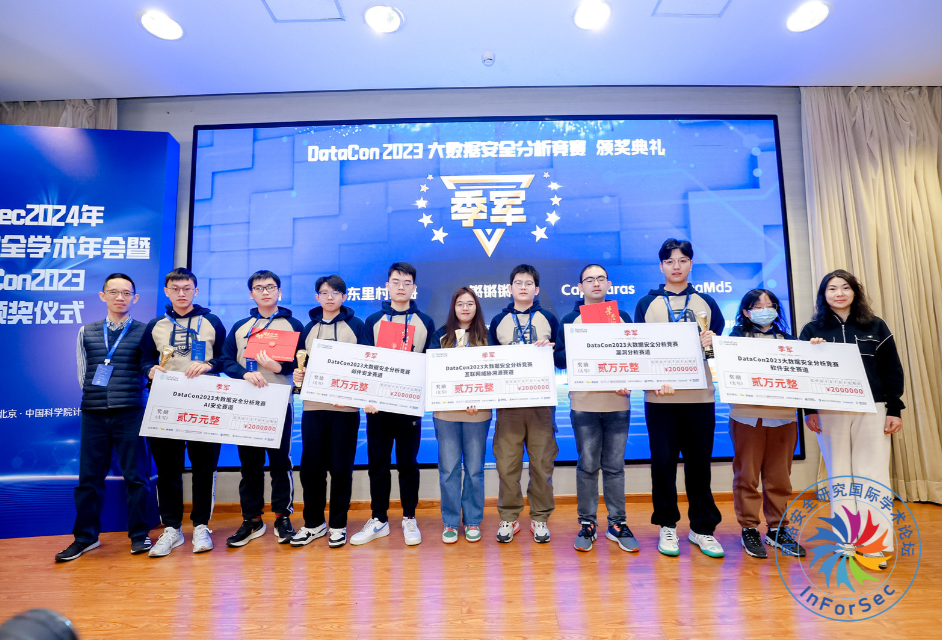 2024年1月12日-13日,InForSec2024年网络空间安全学术年会暨DataCon2023竞赛颁奖仪式在中国科学院计算所举办。本次活动聚集了二十余位网络安全资深专家和青年学者、安全社区创始人,分享网络安全领域最新研究成果、安全社区发展运营经验,并为在DataCon2023大数据安全分析竞赛获奖的优秀战队和导师进行颁奖。