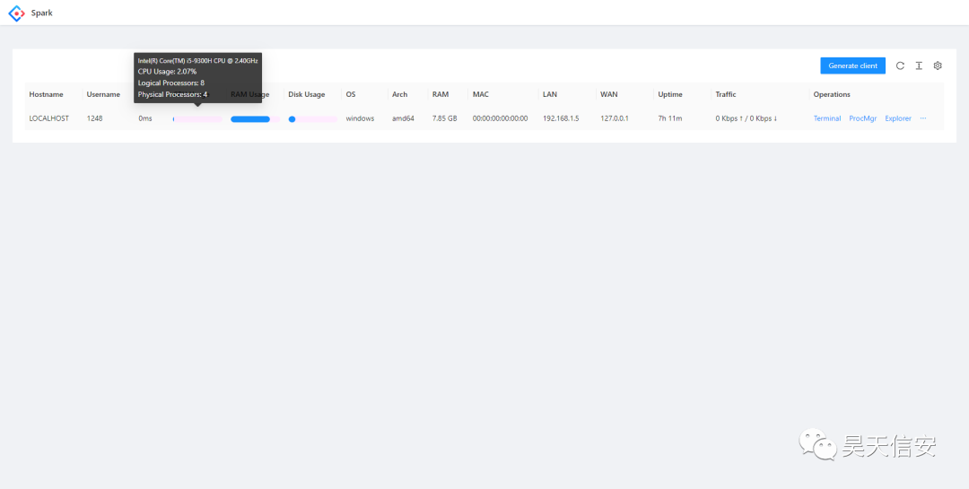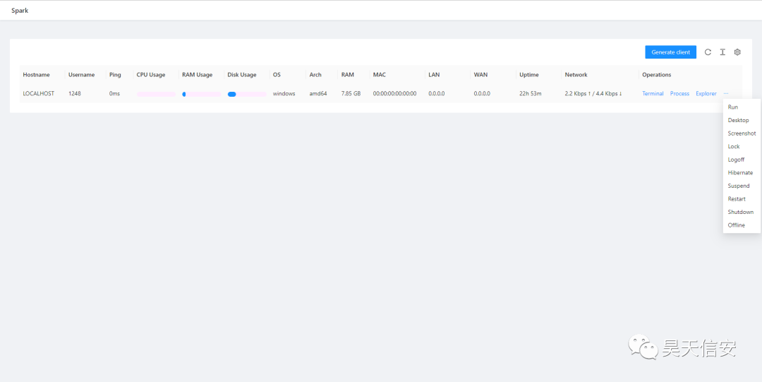 用一句话介绍该项目就是:Spark是一个 Go 编写的,网页UI、跨平台以及多功能的远程控制和监控工具,你可以随时随地监控和控制所有设备。