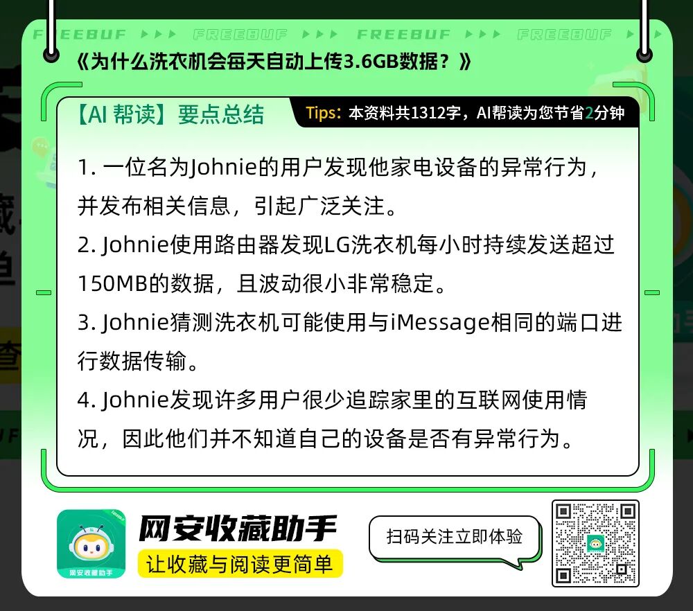 “为什么我家的LG洗衣机每天都会上传3.6GB的数据?”