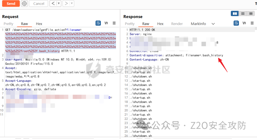我先是读取/root/.bash\_history 内容,根据命令操作拼接路径,先是下载了目标网站的源码,我也是从源码中读到一些数据库账号密码等信息,可惜都是内网,我不能利用到。如果你是代码审计大牛,那么可以直接开始审计代码,从代码中挖掘漏洞,进行getShell。很显然我不是