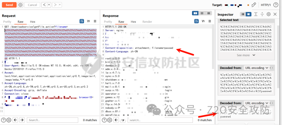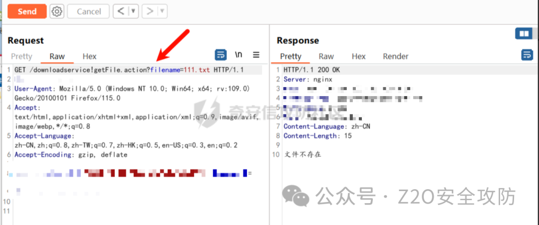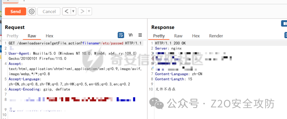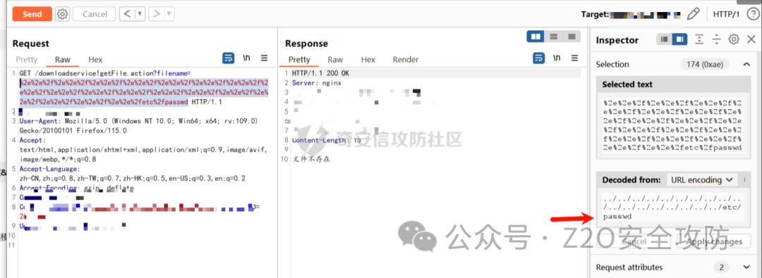 发现测试了许久都是返回文件不存在,那可以考虑当前web程序可能存在防护了,一般开发者在代码层进行防护的话,一般都是过滤掉 **. /** 这种字符进行防护,根据上面提到的方式进行绕过处理