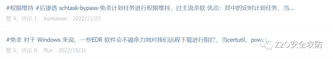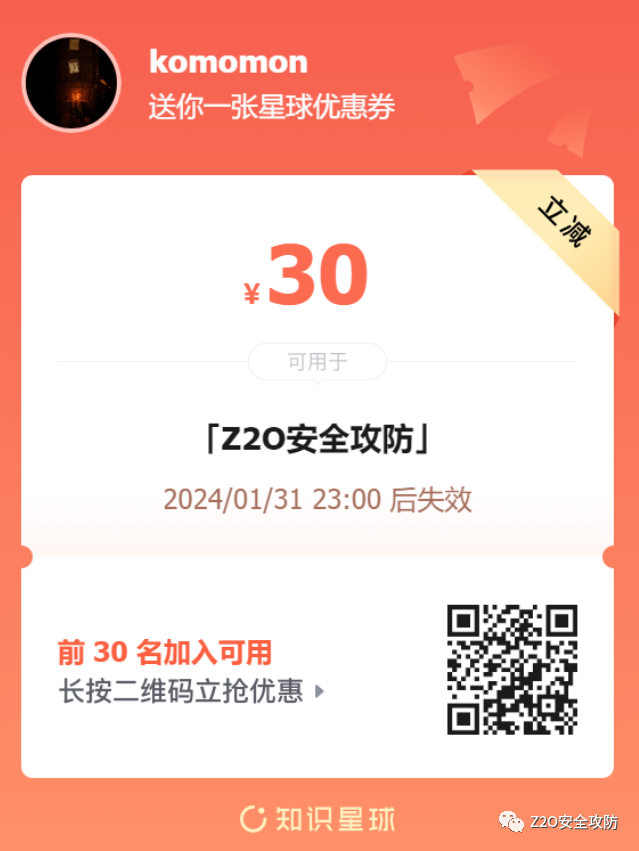 Z2O安全攻防高质量安全攻防星球社区,致力于红蓝对抗,实战攻防,星球不定时更新内外网攻防渗透技巧,未公开或部分公开POC,最新研究成果等。常态化更新最新安全动态。涉及方向包括Web渗透、免杀绕过、内网