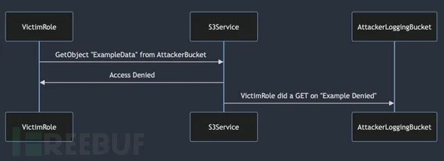 威胁行为者可以使用“Key”、“User-Agent”或其他S3 GetObject请求参数并在这些请求中包含任意数据。生成的“拒绝访问”服务器日志条目中将包含威胁行为者控制的数据,这些数据最终可以在威胁行为者的日志Bucket中捕捉到。