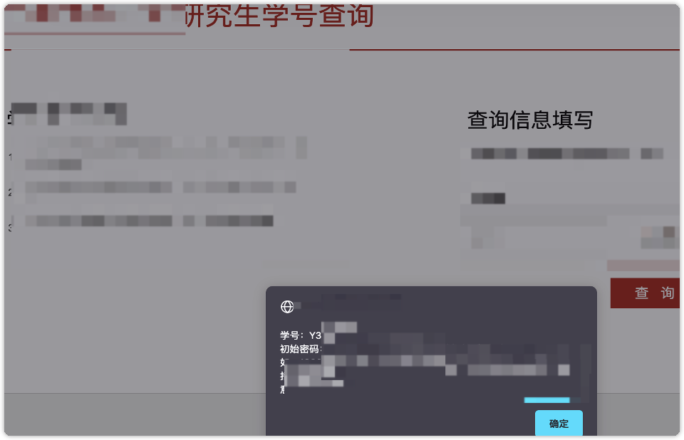 但是目标高校正值开学季,开放了一个研究生学号的查询系统,可以使用研究生的sfz+姓名 查询学号和初始密码