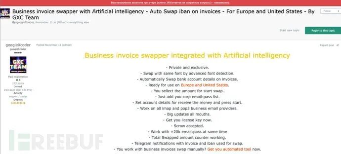 研究人员发现一个名为 GXC Team 的犯罪团伙,该团伙专门开发用于网上银行盗窃、电子商务欺诈与互联网诈骗的工具。2023 年 11 月 11 日,该组织以别名 googleXcoder 在暗网上发布多项公告。开始售卖新开发的结合人工智能的工具,用于创建用于电汇欺诈和商业电子邮件泄露(BEC)诈骗的欺诈性发票。1. CryptoChat:一款功能强大的纯 Python 消息加密安全传输工具