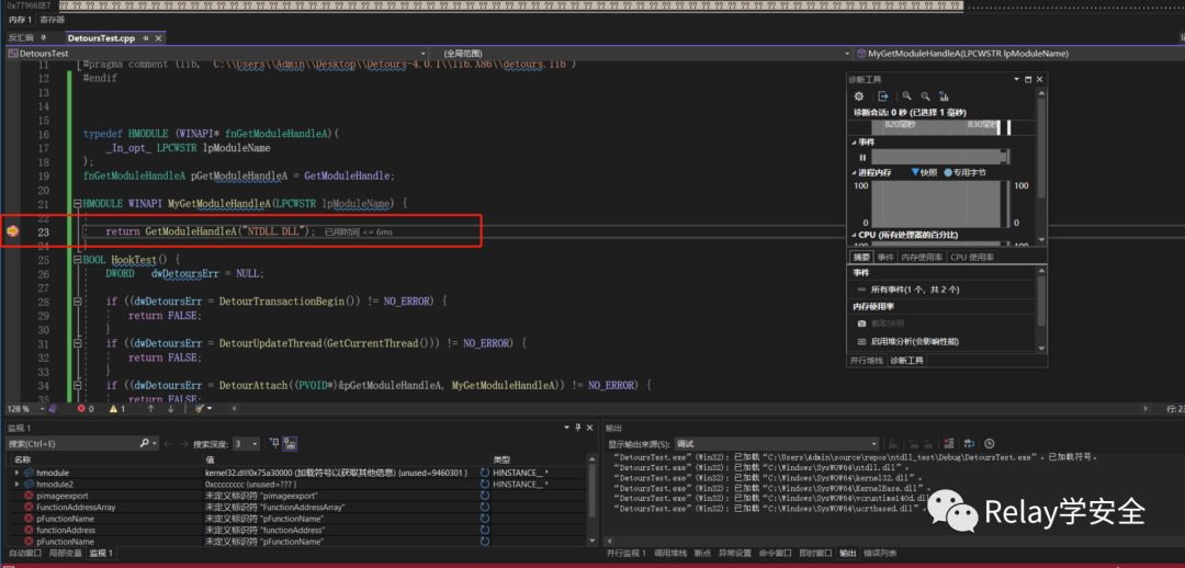 实现API 挂钩有很多方式,我们可以利用微软开源Detours库来进行使用或者minhook库,如下: