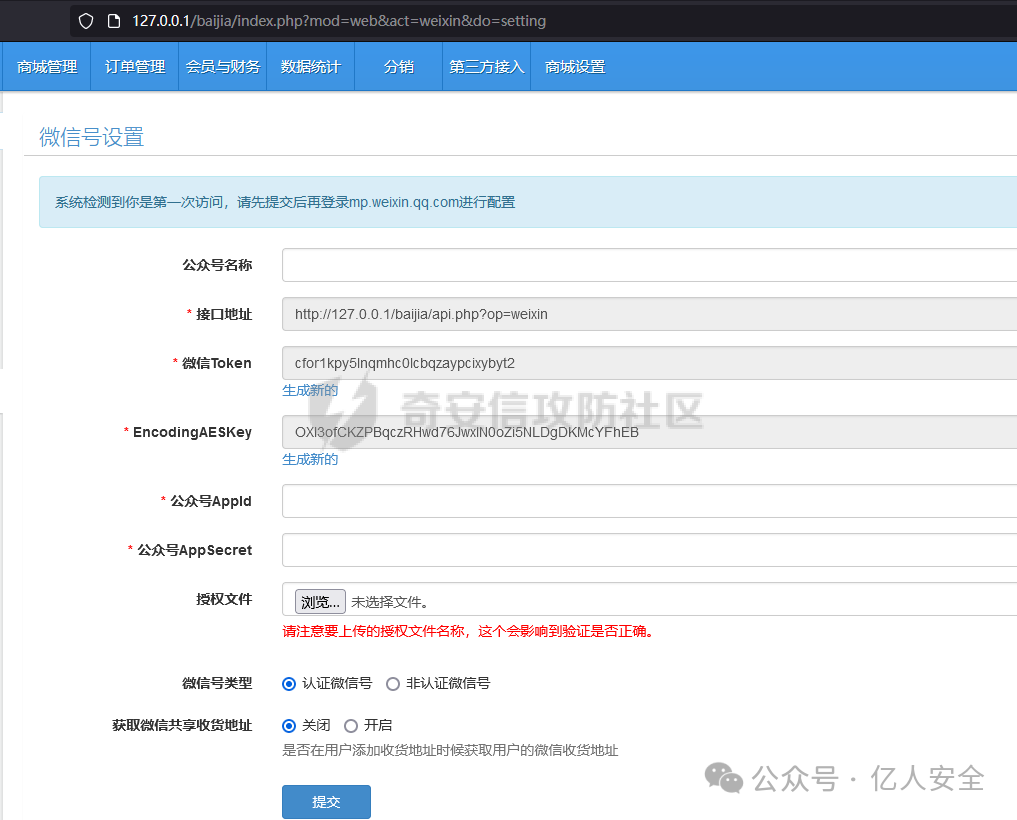 定位到漏洞存在路径/index.php/?mod=web&act=weixin&do=setting
