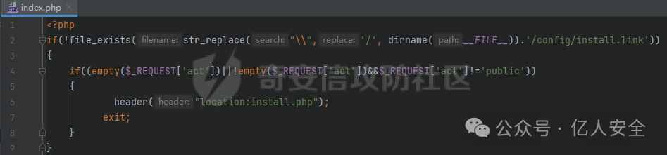 首先检查/config/install.link文件是否存在,如果不存在就重定向到install.php进行安装