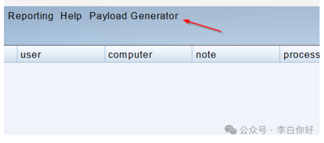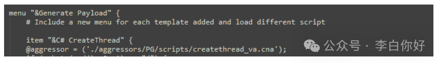 侵略者只会在预定的路径中工作,即 ,当添加新的侵略者脚本时,一个新的菜单按钮将添加到 Cobalt Strikes 菜单栏中C:\Tools\cobaltstrike\aggressors\PG