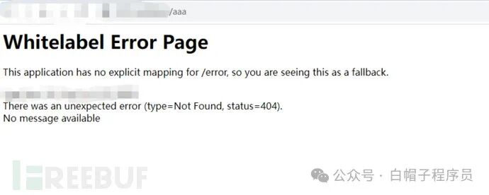 随后,随意构造了目录aaa看看会发生啥,结果发现是非常熟悉的404错误页面,该页面的特征确定了使用Spring Boot框架,于是看看Spring Boot是否有一些配置接口泄露,运气好还可以执行RCE