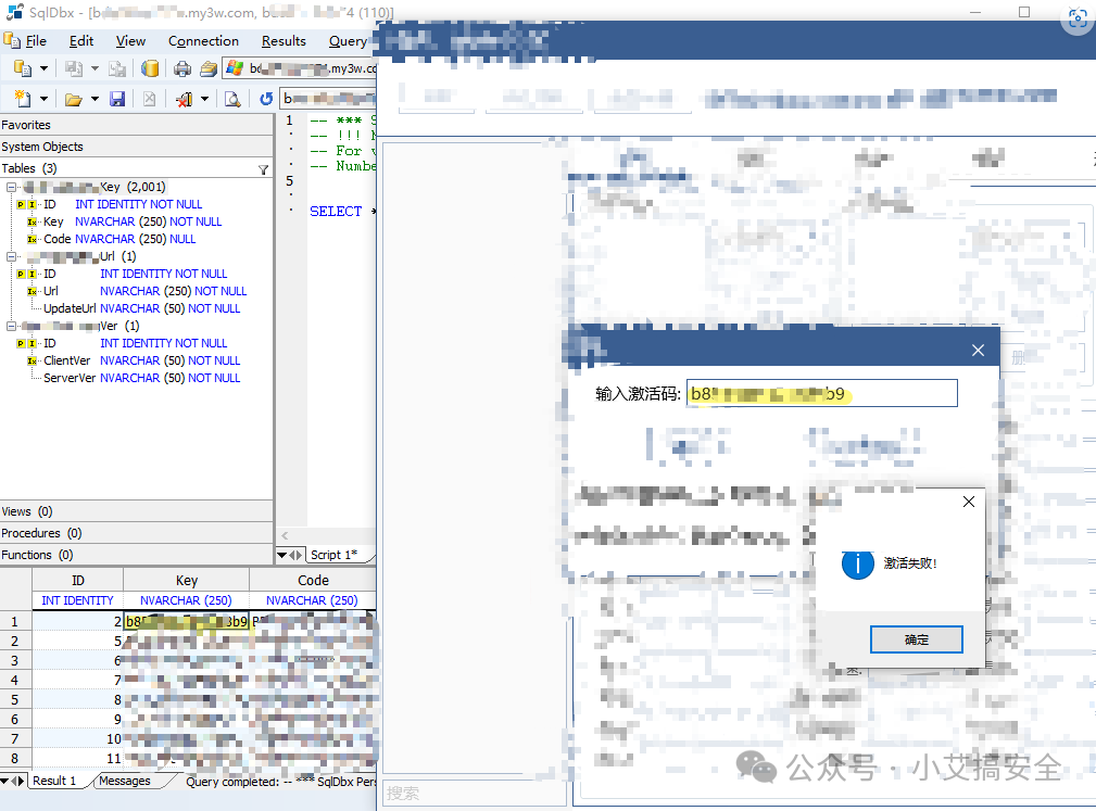 我们来验证一下。首先选择要给Code不为Null的激活码,验证失败: