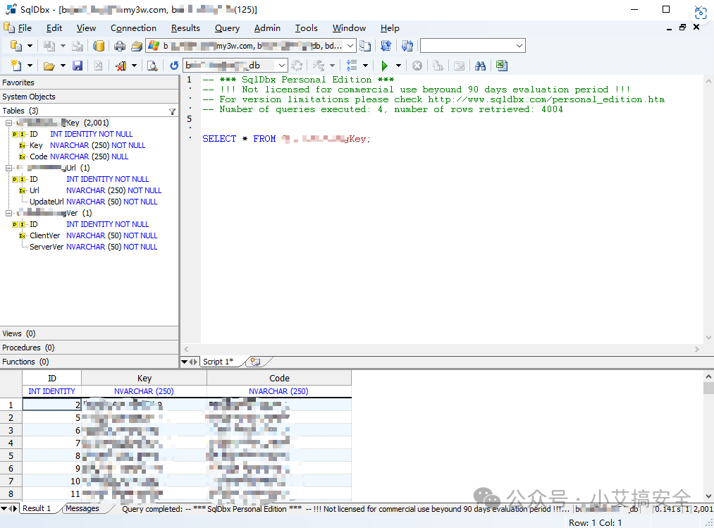 Key就是激活码,Code是通过cpu等信息计算出来的。如果Code为Null,说明这个激活码还没使用过,如果不为Null,说明这个激活码已经被使用过了。