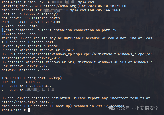 拿下数据库,我们再大胆一点,看下能不能拿下这台远程主机。然而扫描发现ssh和3389都没开: