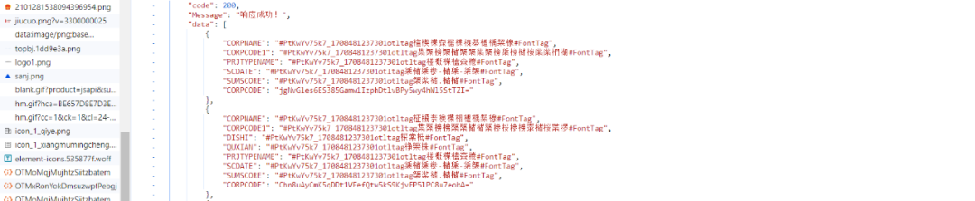 但是我们怎么知道字体他到底是用的哪个 woff 文件呢?细心的小伙伴已经观察到了,在查询接口返回的时候,他给我们返回这样的一个格式: