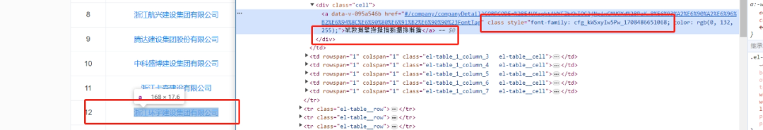 通过上面基本的介绍,我们已经了解了 css 加密的原理,就是通过 css 样式进行设置的,打开 F12,利用定位元素的功能,随便找一处字体进行定位,我们发现他被设置了 cfg_kWSxyIw5Pw_1708486651068 的这个样式: